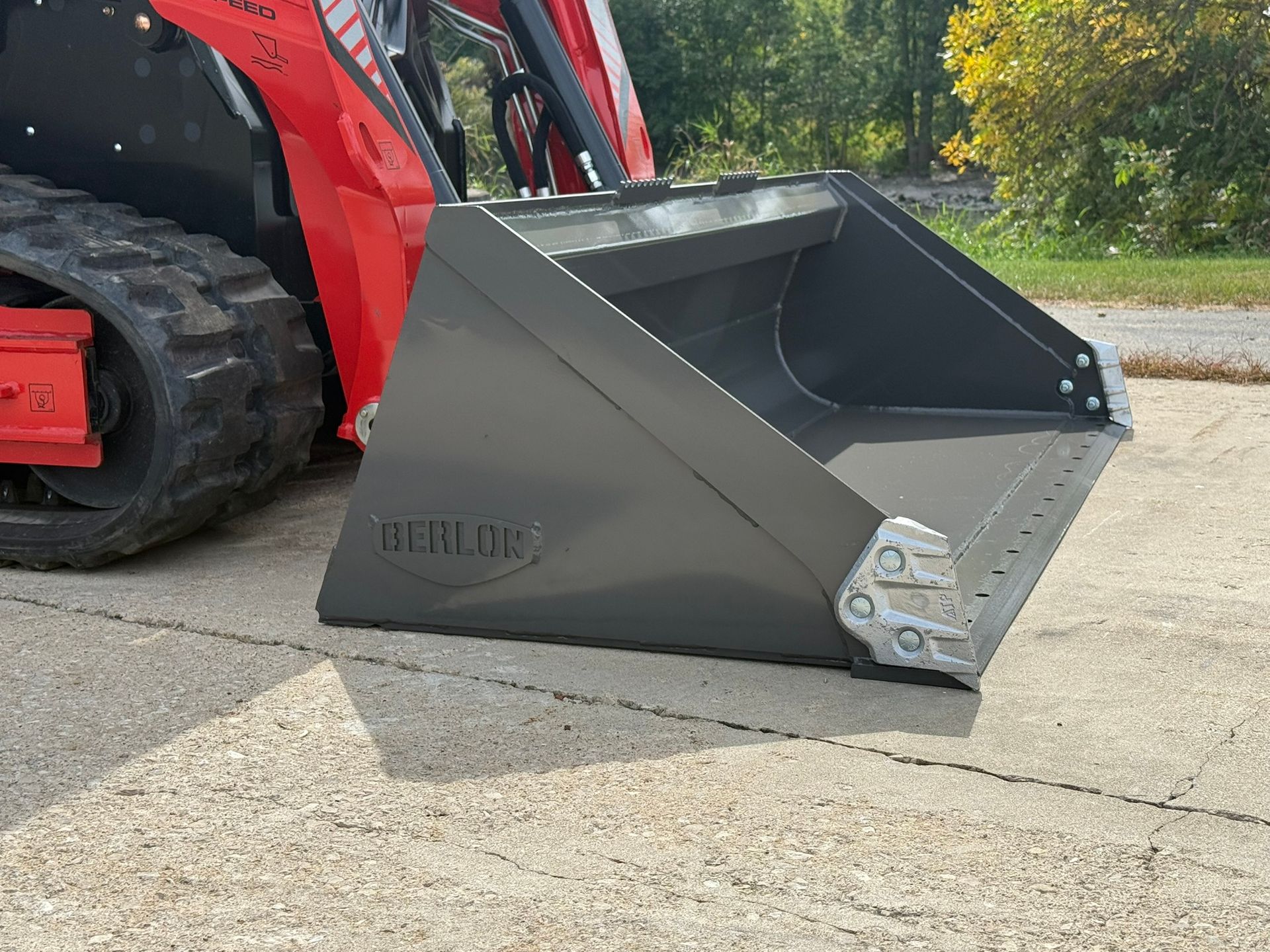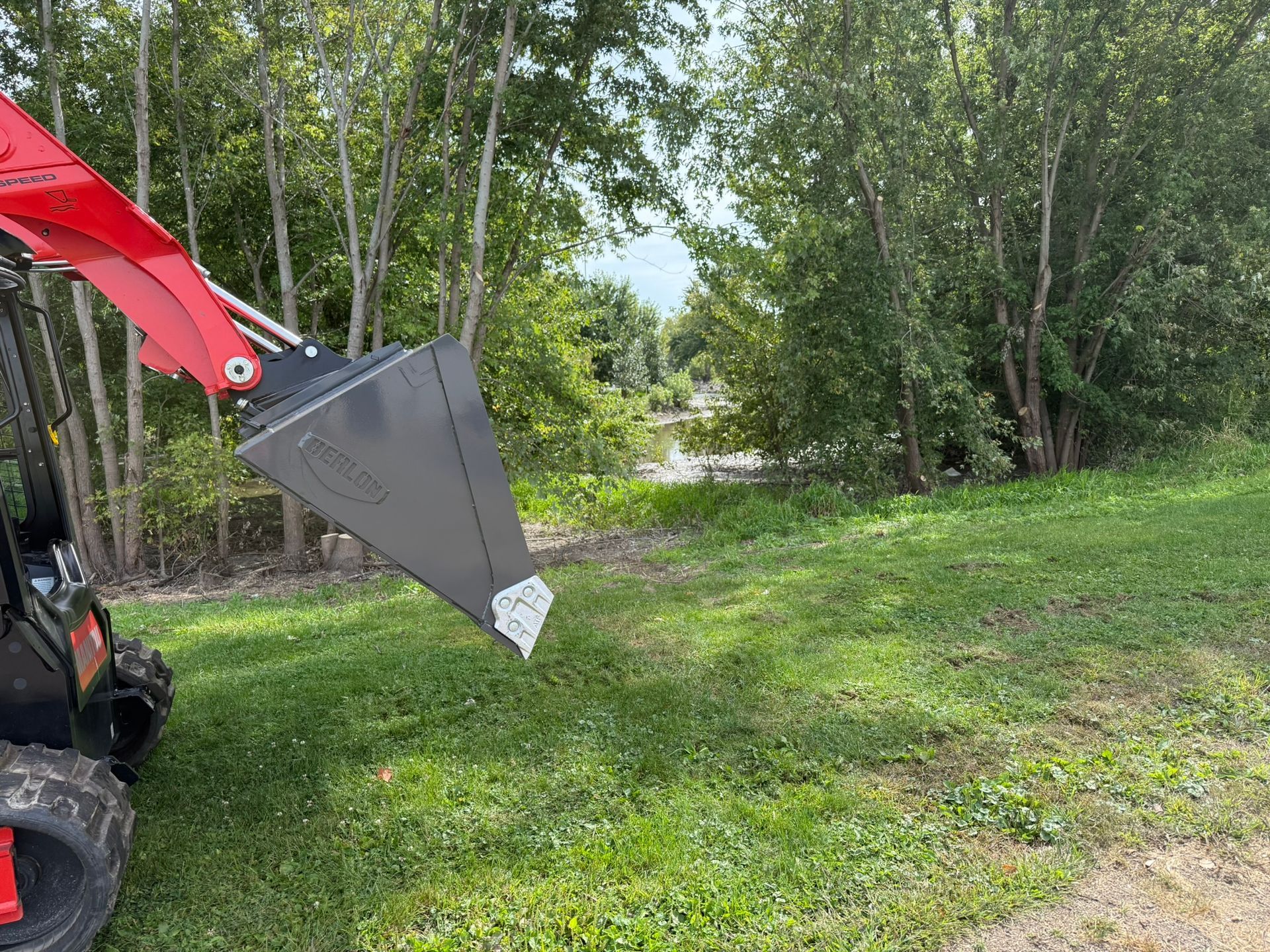 Tough, precise, and built to last. Reinforced with wear plates and bottom wear bars, this bucket is ready for the heaviest grading jobs. The extended lip profile gives operators better visibility to the cutting edge for smooth, accurate back dragging. A universal skid steer mount makes it easy to hook up and get to work.
