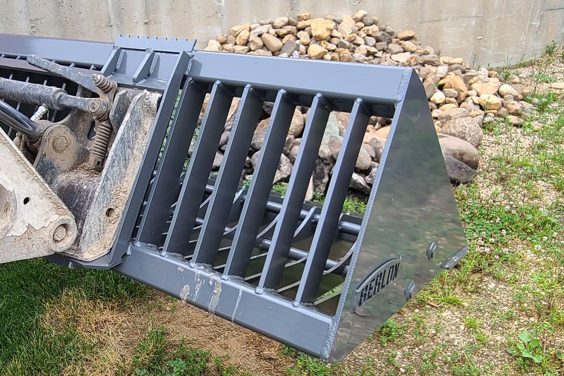 Berlon’s Skeleton Rock bucket will take years of extreme use. The deep-well rock dam keeps materials in place while transporting or picking up extra material.