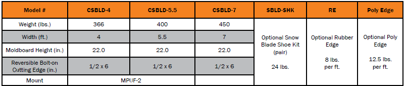 Berlon’s Snow Blade is ideal for a wide variety of snowplowing. The rolled stainless steel moldboard prevents corrosion, and allows the snow to roll off.